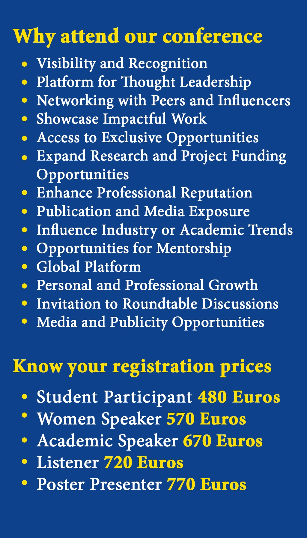 Submit your abstract and complete your registration to take advantage of the extended early bird rates.